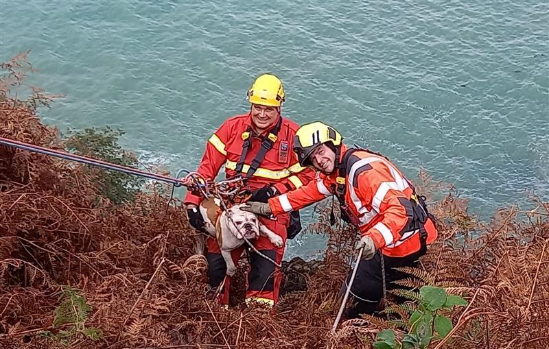 Our team was called to help rescue a lovely English Bulldog named George Bullfrog (yes, that’s his full name!) who decided to go exploring along the north coast at Bouley Bay.